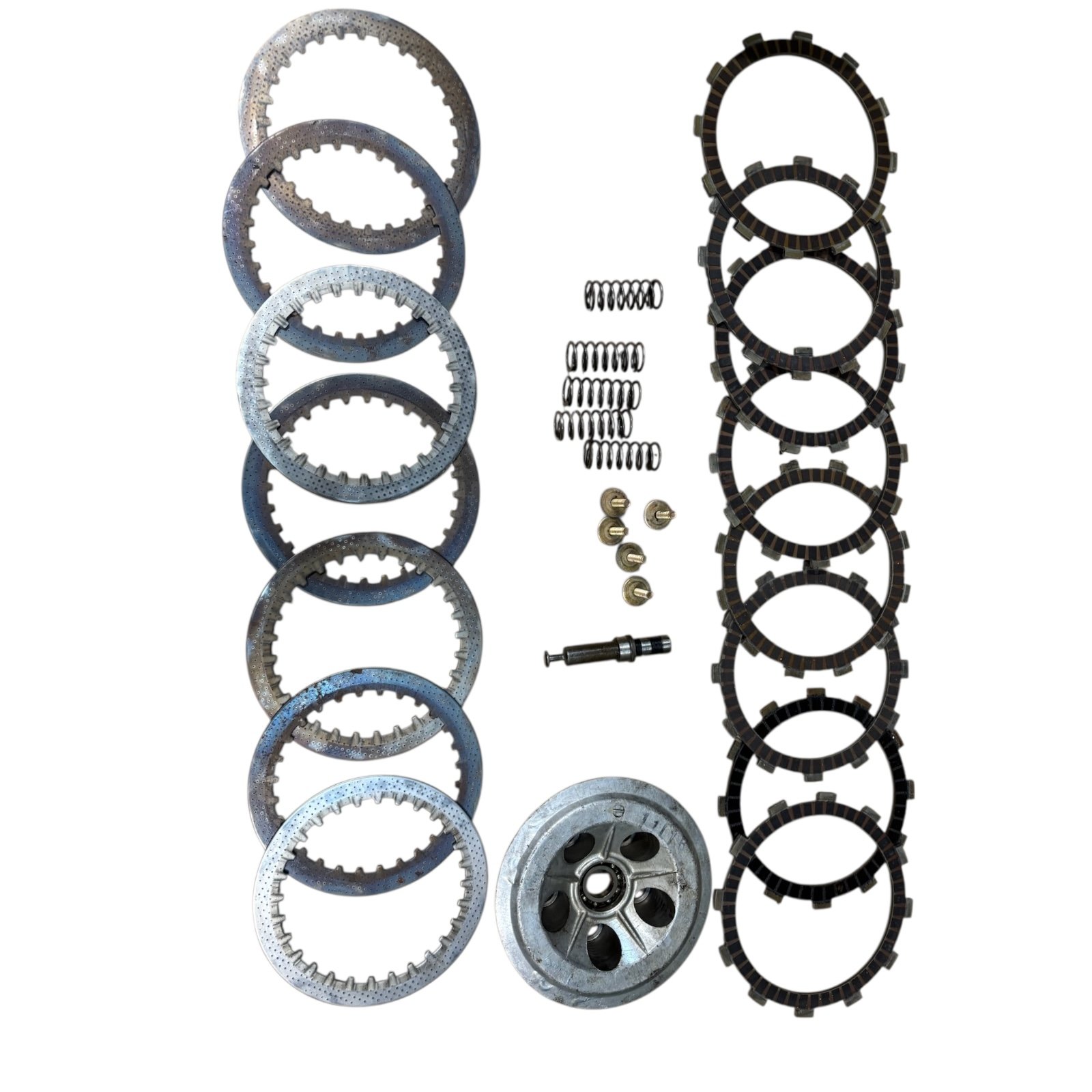 Embrayage de TRIUMPH 955 Spirit en bon état, ensemble composé des disques garnis, disques lisses, ressorts, vis et noix d’embrayage