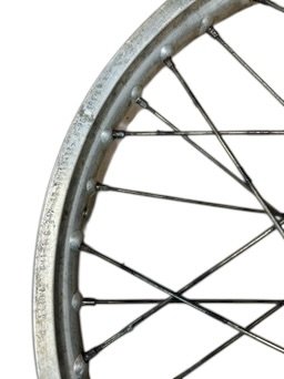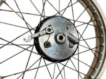 Jante avant de BULTACO Frontera marque Akront diamètre 21 en bon état, le tambour a un diamètre de 14 cm idéal pour un freinage plus puissant sur une trial vintage par exemple. Vendue avec la flasque et l’axe comme sur les photos.