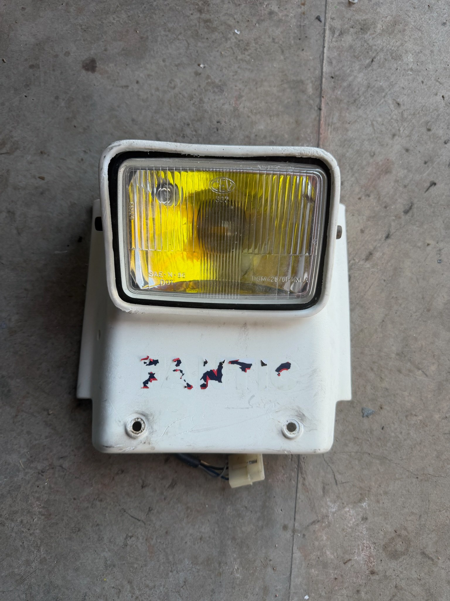 Plaque phare de FANTIC 241 ou 301, le tour en plastique a été recollé, voir les photos