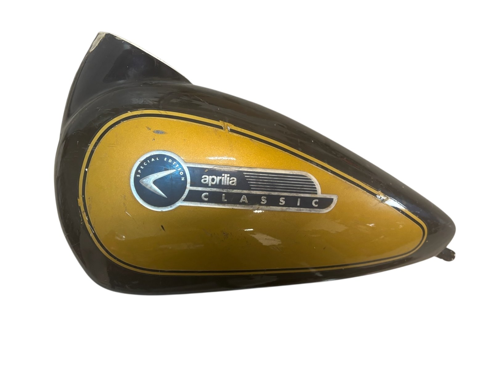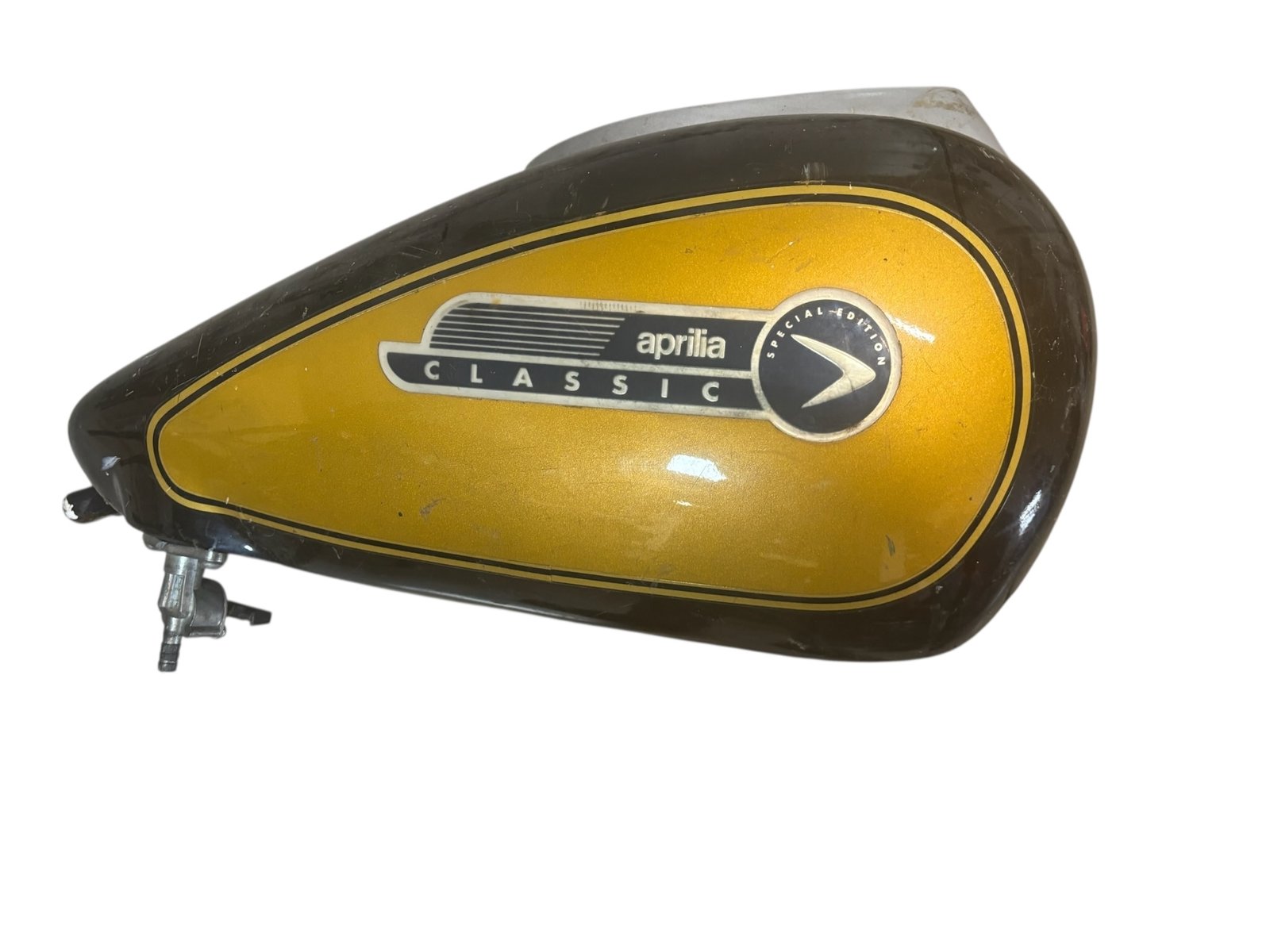 Réservoir de APRILIA 125 Classic vendu comme sur les photos avec le bouchon sans les clés, le robinet d’essence ainsi que le compteur sans la vitre