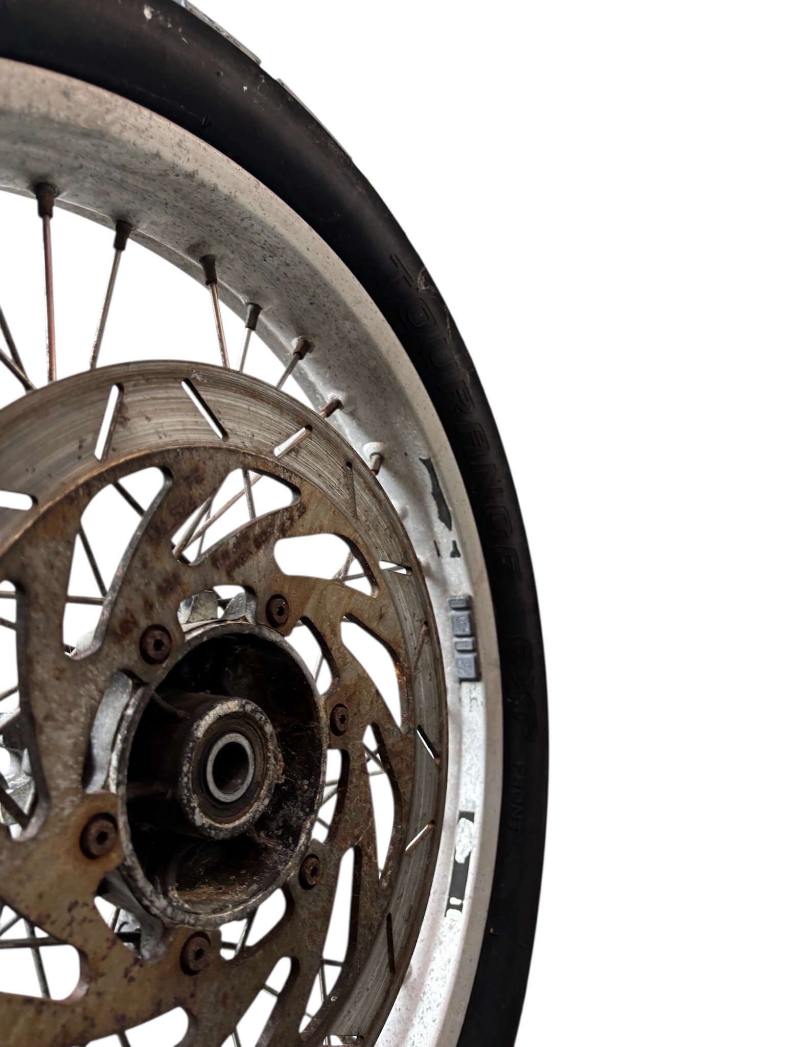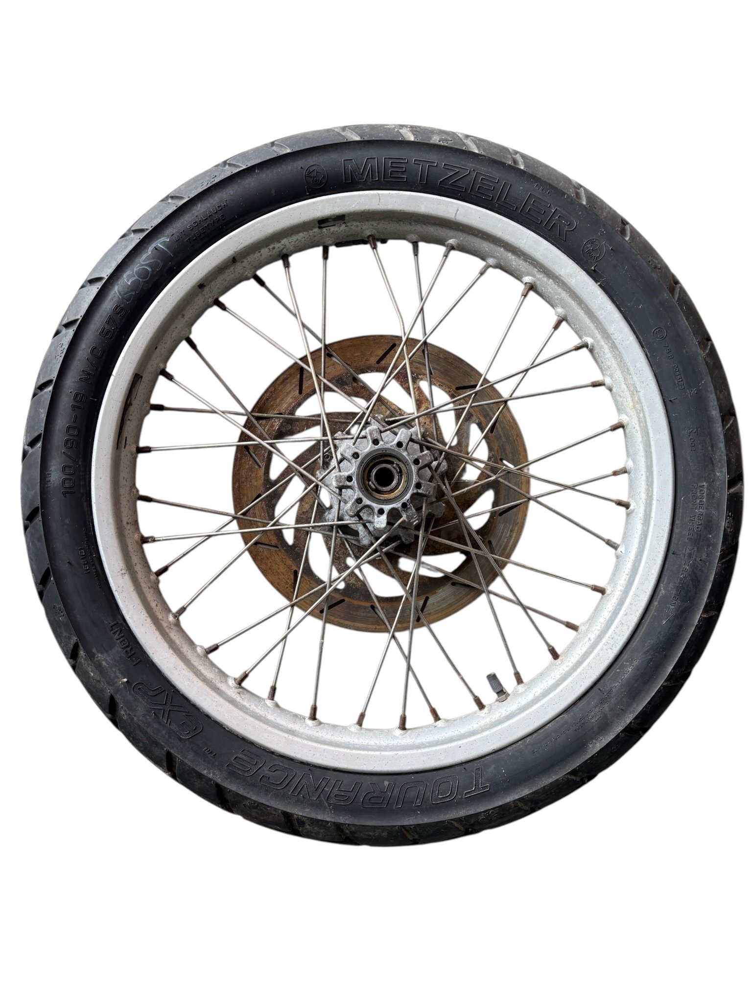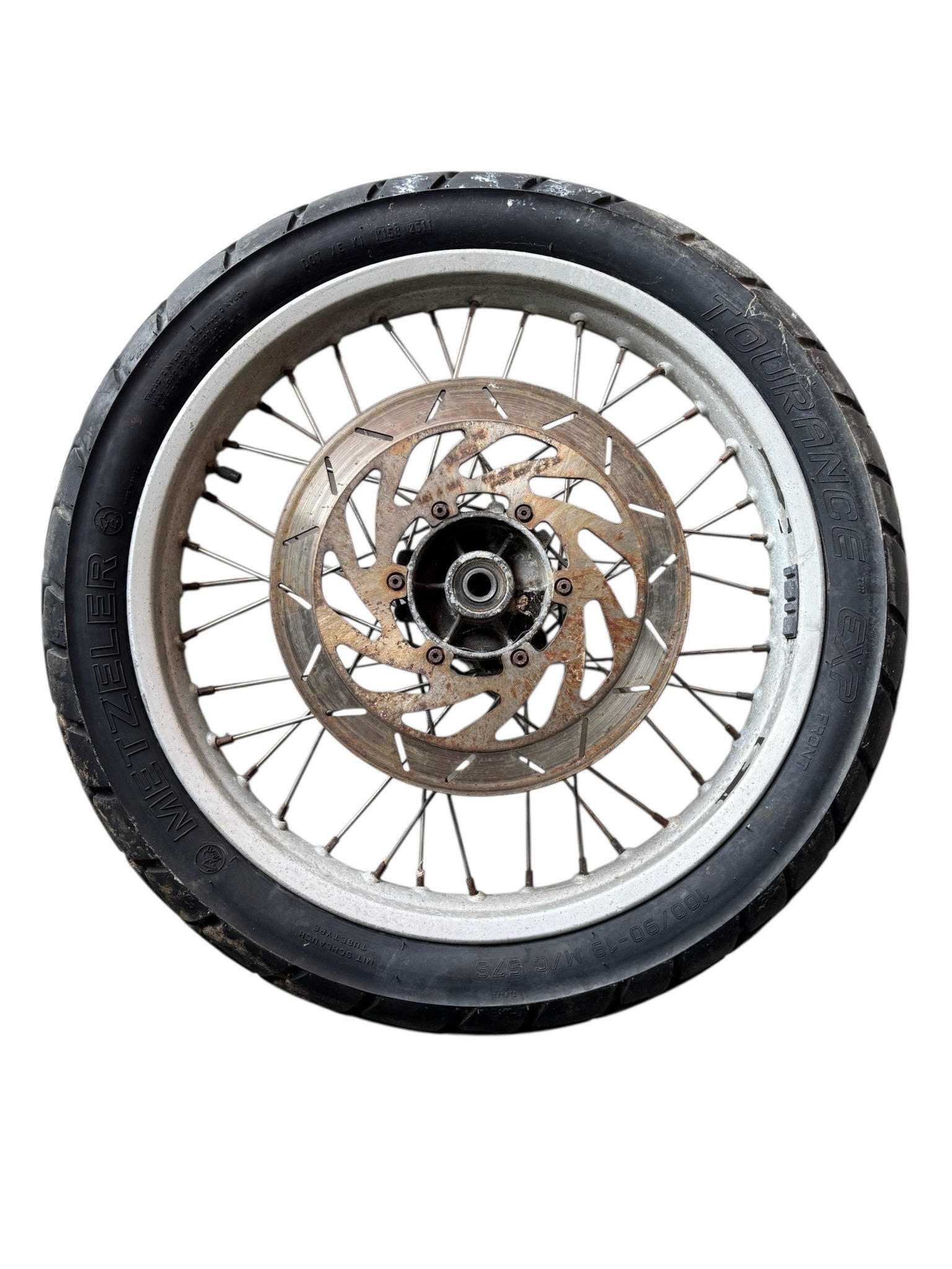Roue avant de BMW 650 ST vendue complète comme sur les photos, le pneu est ancien et doit être remplacé