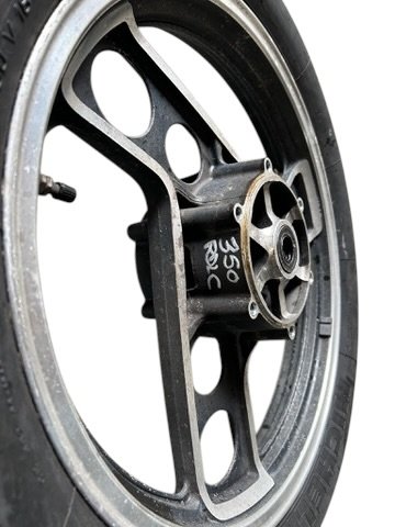 Roue avant de YAMAHA 350 RDLC 31K, le pneu est à remplacer